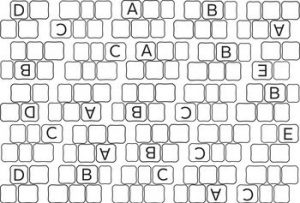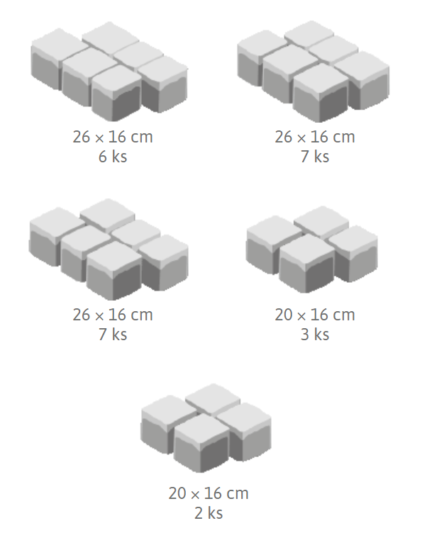 • dlažba so vzhľadom tzv. mačacích hláv zložená z blokov, ktoré obsahujú 4 a 6 navzájom spojených prvkov